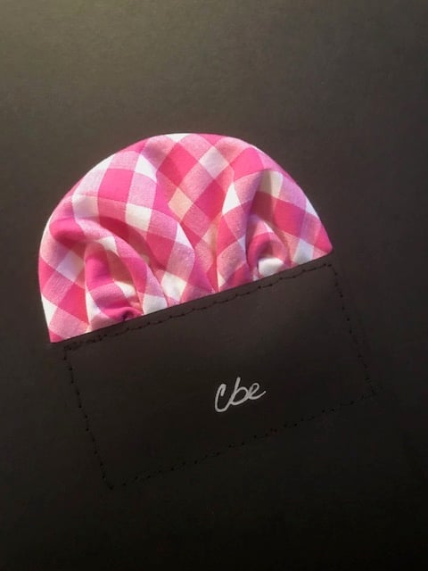 Our pocket squares are handcrafted, individually, in our home studio in Northern California. Each one is hand cut and sewn on (extra long) quality, black card stock.
